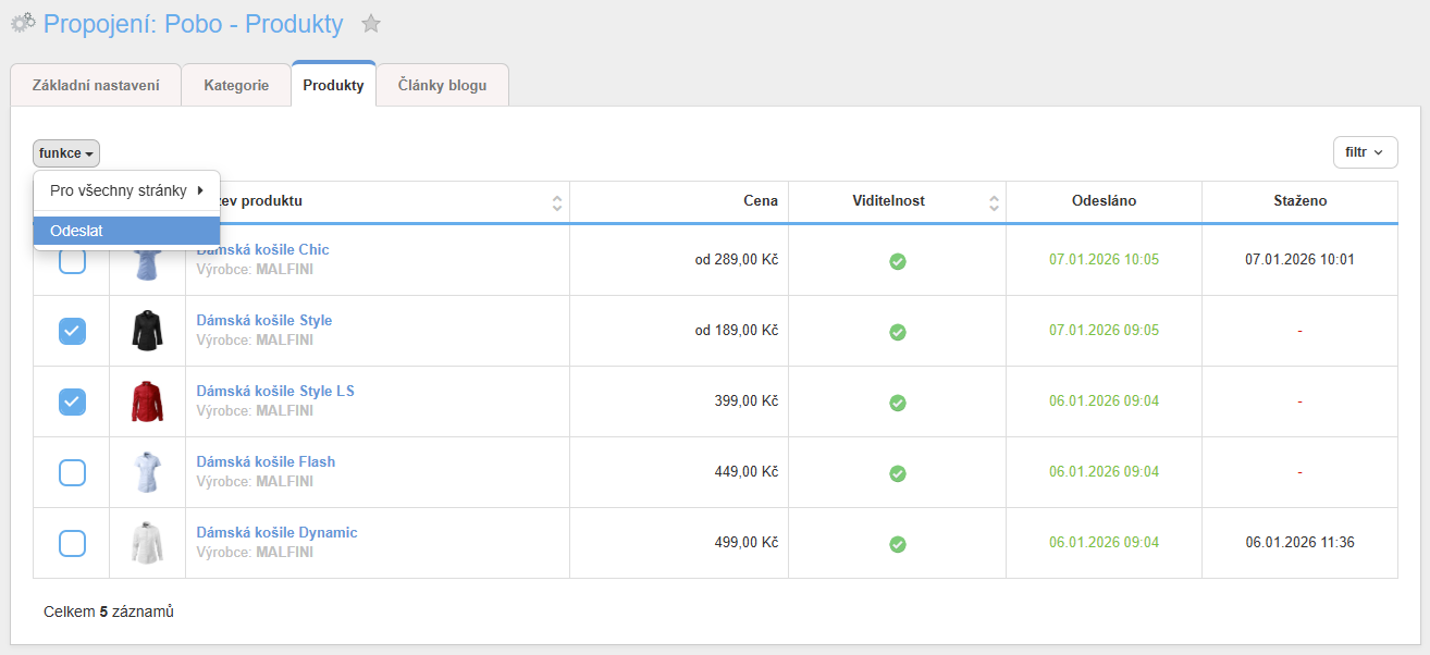 Jakmile odešlete data do systému Pobo, můžete daný záznam v Pobo dále upravovat a následně jej exportovat zpět do e-shopu. Pokud máte správně nastavené webhooky, dojde při zpětném přenosu k automatické aktualizaci obsahu v e-shopu.
